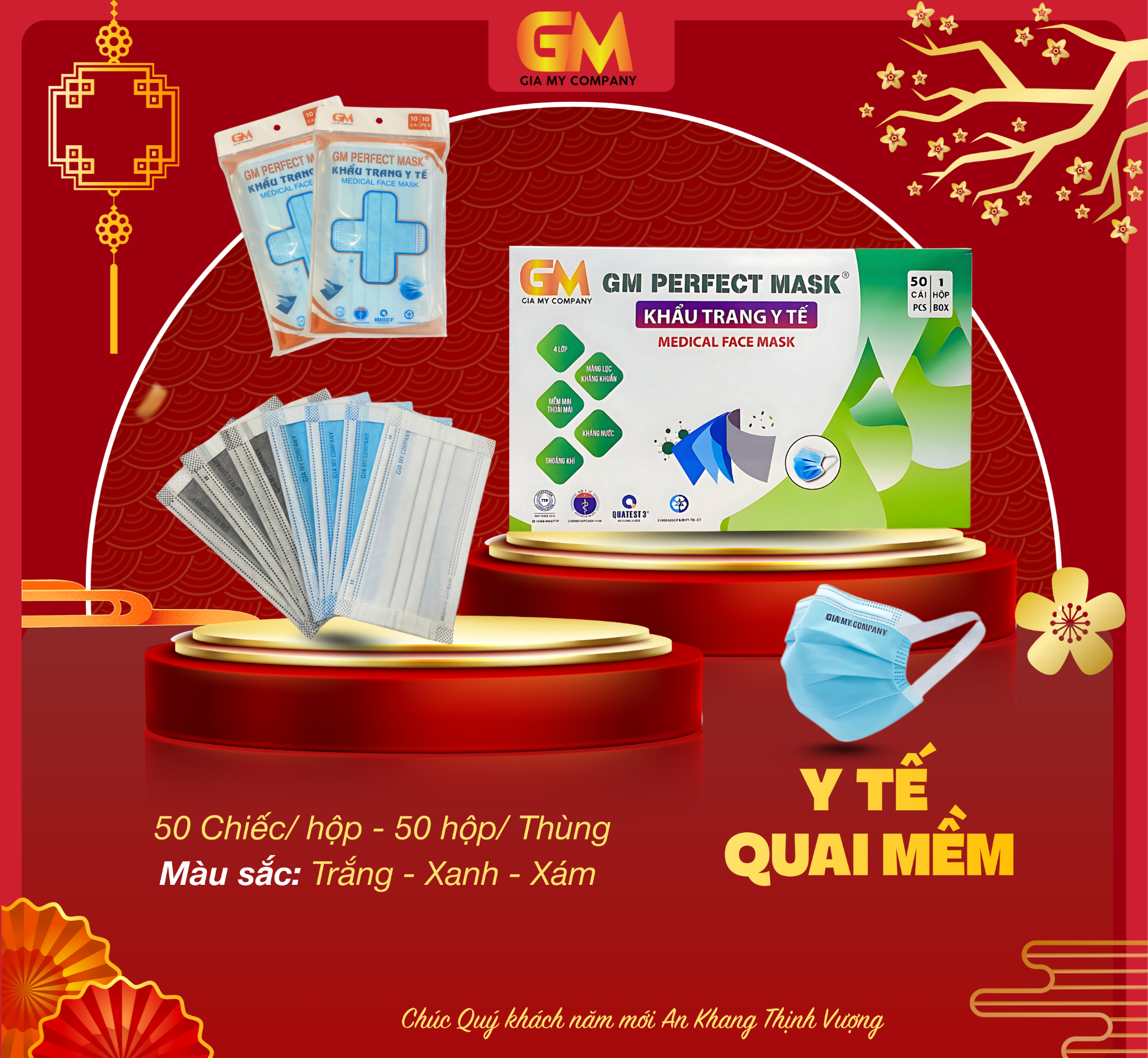 KHẨU TRANG Y TẾ GIA MỸ- GM PERFECT MASK - CHÚNG TÔI CAM KẾT: - HÌNH CHỤP THỰC TẾ CỦA SẢN PHẨM - KIỂM TRA HÀNG TRƯỚC KHI THANH TOÁN ------------------------------------------------- CÔNG DỤNG KHẨU TRANG Y TẾ 4 LỚP QUAI MỀM + Ngăn khói bụi, vi khuẩn + Phòng chống lây qua đường hô hấp + Hiệu quả khi lưu thông trên đường, không gây dị ứng + Dùng trong sản xuất thực phẩm, sản xuất các linh kiện trong phòng sạch… + Dùng trong y tế + Dùng hàng ngày để bảo vệ bản thân khỏi khói bụi, các hóa chất độc hại… MÔ TẢ SẢN PHẨM - Thương hiệu: Khẩu trang y tế Gia Mỹ - Tiêu chuẩn lưu hành: đạt tiêu chuẩn của bộ y tế, đầy đủ giấy chứng nhận lưu hành sản phẩm. + Chất lượng ISO13485:2016: Tiêu chuẩn quản lý chất lượng cho các sản phẩm hàng hóa. + CE: Chứng chỉ bắt buộc đối với hàng hóa nhập vào thị trường châu Âu. + FDA: Chứng chỉ bắt buộc đối với hàng hóa nhập vào thị trường Hoa Kỳ. Công nghệ: ứng dụng kỹ thuật và công nghệ nước ngoài với vật liệu chế tạo hoàn toàn ngoại nhập. Thành phần bao gồm: + 2 Lớp vải không dệt (Non - women) ở mặt trong và mặt ngoài. + 2 lớp lọc bụi & vi khuẩn (Melt - blown Filter) Màu sắc: Xanh, Xám , trắng, hồng, đen Quy cách đóng gói: 50 cái/hộp, 50 hộp/thùng Khẩu trang Y Tế Gia Mỹ 4 lớp có khả năng lọc các loại khí H2S, SO2, CO, NH3 và lọc bụi > 90% Sử dụng vật liệu không gây dị ứng với da, có tính đàn hồi và co giãn tốt đảm bảo khẩu trang bịt kín mọi kẽ hở, đồng thời vừa vặn với nhiều loại khuôn mặt. Ngăn ngừa tuyệt đối sự thâm nhập vào đường hô hấp của hầu hết các chất ô nhiễm trong không khí:Hydrocacbon (bao gồm benzen, piren butadien 1 -3) Cacbon oxit CO, Đyoxit sunphua (SO2), Đioxit Nitơ (NO2), Khói quang hoá, khói đen, Andehyt, Oxít chì, phấn hoa… CÔNG TY TNHH SX-TM-DV XNK GIA MỸ ☎️ Hotline: 0938 810 855 - 0918 887 981 🌐Website: http://giamygroup.com/ Trụ sở chính: 43/10 Ấp Hậu Lân, xã Bà Điểm, huyện Hóc Môn, TP.HCM