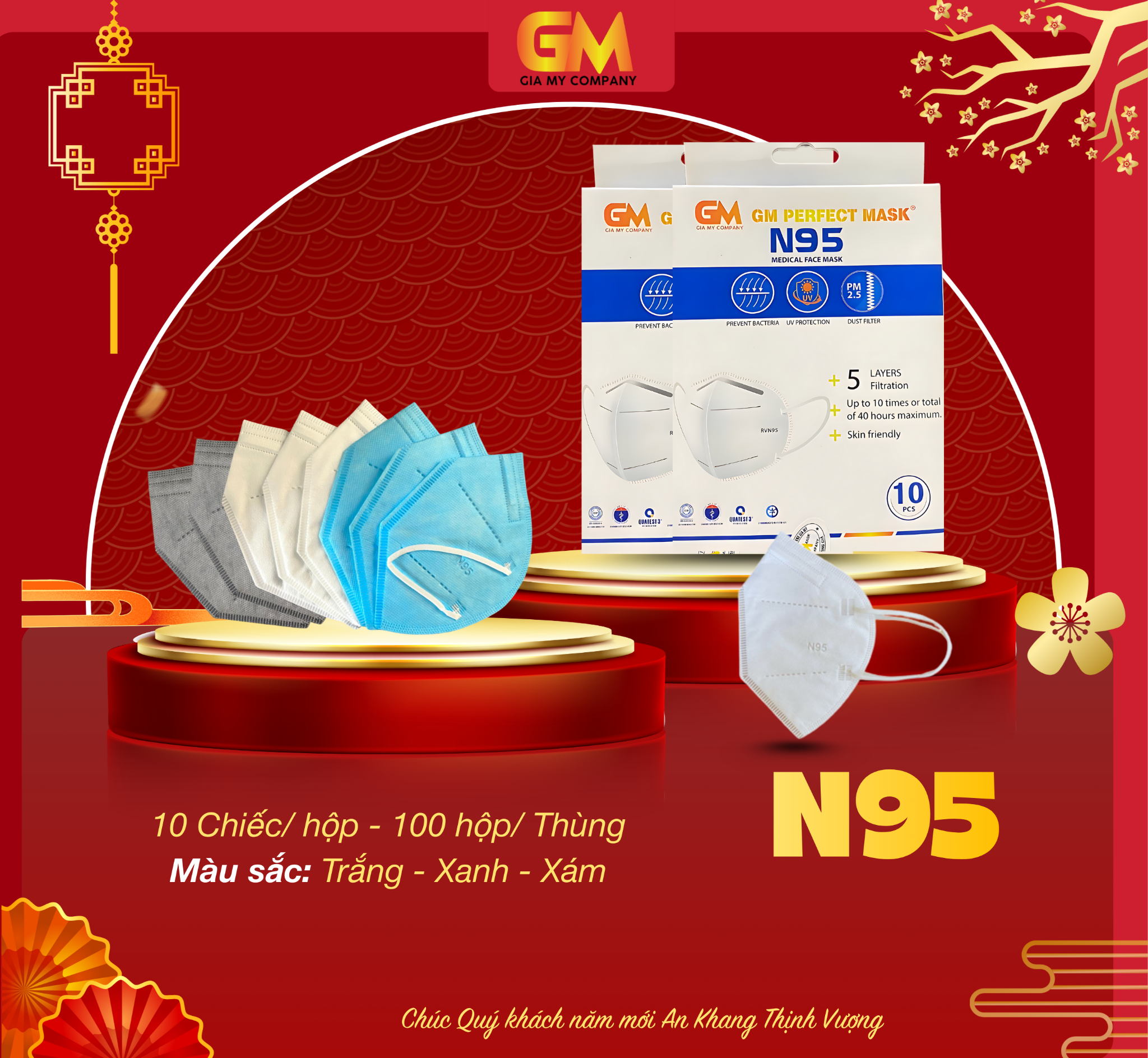 KHẨU TRANG Y TẾ GIA MỸ- GM PERFECT MASK - CHÚNG TÔI CAM KẾT: - HÌNH CHỤP THỰC TẾ CỦA SẢN PHẨM - KIỂM TRA HÀNG TRƯỚC KHI THANH TOÁN ------------------------------------------------- CÔNG DỤNG KHẨU TRANG N95 + Ngăn khói bụi, vi khuẩn + Phòng chống lây qua đường hô hấp + Hiệu quả khi lưu thông trên đường, không gây dị ứng + Dùng trong sản xuất thực phẩm, sản xuất các linh kiện trong phòng sạch… + Dùng trong y tế + Dùng hàng ngày để bảo vệ bản thân khỏi khói bụi, các hóa chất độc hại… MÔ TẢ SẢN PHẨM - Thương hiệu: GM PERFECT MASK (Khẩu trang y tế Gia Mỹ) - Tiêu chuẩn lưu hành: đạt tiêu chuẩn của bộ y tế, đầy đủ giấy chứng nhận lưu hành sản phẩm. + Chất lượng ISO13485:2016: Tiêu chuẩn quản lý chất lượng cho các sản phẩm hàng hóa. + CE: Chứng chỉ bắt buộc đối với hàng hóa nhập vào thị trường châu Âu. + FDA: Chứng chỉ bắt buộc đối với hàng hóa nhập vào thị trường Hoa Kỳ. Công nghệ: ứng dụng kỹ thuật và công nghệ nước ngoài với vật liệu chế tạo hoàn toàn ngoại nhập. Thành phần bao gồm: + 2 Lớp vải không dệt (Non - women) ở mặt trong và mặt ngoài. + 2 lớp lọc bụi & vi khuẩn (Melt - blown Filter) Màu sắc: Xanh, Xám , trắng Quy cách đóng gói: 10 cái/hộp, 100 hộp/thùng Khẩu trang Y Tế Gia Mỹ 4 lớp có khả năng lọc các loại khí H2S, SO2, CO, NH3 và lọc bụi > 90% Sử dụng vật liệu không gây dị ứng với da, có tính đàn hồi và co giãn tốt đảm bảo khẩu trang bịt kín mọi kẽ hở, đồng thời vừa vặn với nhiều loại khuôn mặt. Ngăn ngừa tuyệt đối sự thâm nhập vào đường hô hấp của hầu hết các chất ô nhiễm trong không khí:Hydrocacbon (bao gồm benzen, piren butadien 1 -3) Cacbon oxit CO, Đyoxit sunphua (SO2), Đioxit Nitơ (NO2), Khói quang hoá, khói đen, Andehyt, Oxít chì, phấn hoa… CÔNG TY TNHH SX-TM-DV XNK GIA MỸ ☎️ Hotline: 0938 810 855 - 0918 887 981 🌐Website: http://giamygroup.com/ Trụ sở chính: 43/10 Ấp Hậu Lân, xã Bà Điểm, huyện Hóc Môn, TP.HCM